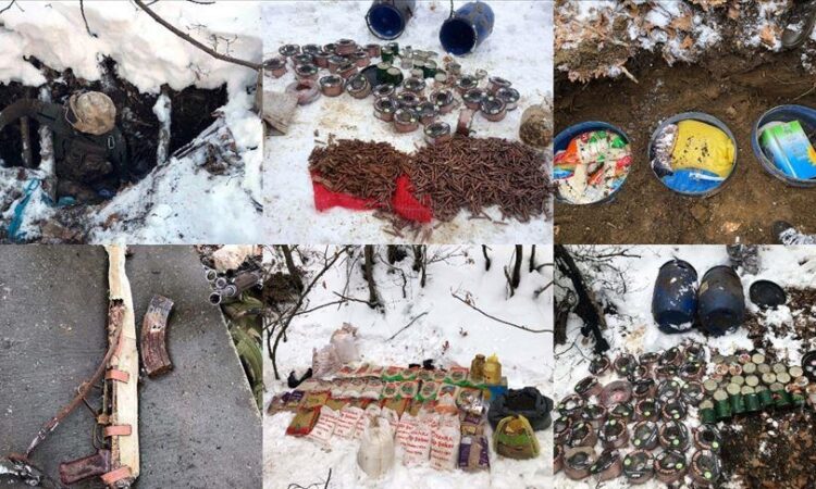Penyitaan ini terjadi setelah pasukan keamanan di distrik Mutki menemukan dua tempat penampungan teroris selama operasi di daerah pedesaan desa Kulluce, menurut pernyataan kantor gubernur.